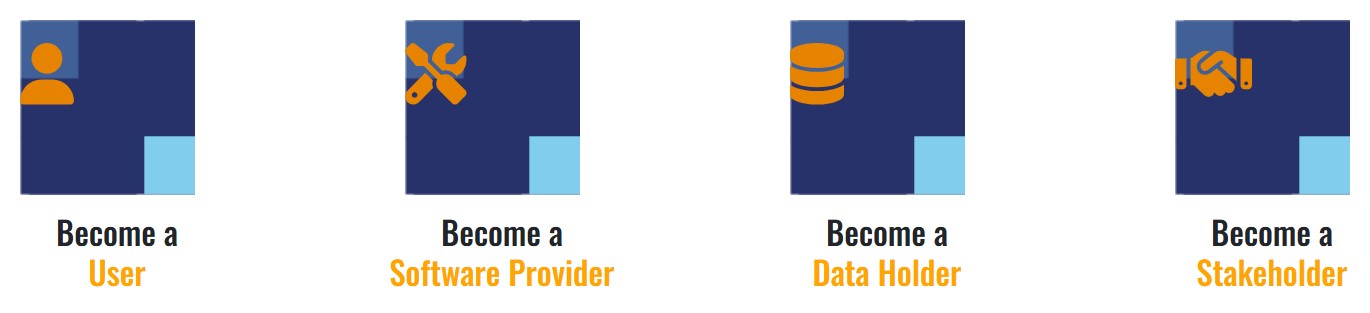 In the introductory section please select a user profile (data holder, software provider and/or data user), multiple selection is possible in case you belong to more than one user profile group. You will then see which of the sections are relevant to your user profile. This can be changed at any time in case you would like to access other sections as well.
